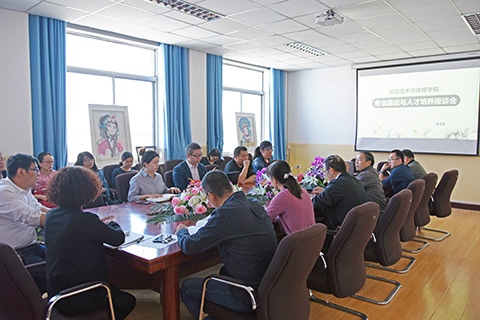 4月23日,公司邀请中软国际、西安图森、甘肃大乘等企业行业的领导、专家,就信息技术类、影视传媒类专业建设和人才培养等方面的问题进行了座谈讨论,公司经理王玉明教授主持会议,公司相关专业教师40多人参加了座谈会。