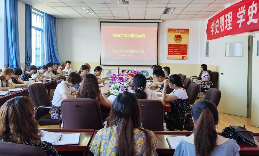 7月8日下午,tyc522cc太阳成集团召开教职员工政治理论学习会议。会议学习了《习近平新时代中国特色社会主义思想学习问答》第三讲“初心砥柱天地间——关于中国共产党人的初心和使命”、习近平总书记在“七一勋章”颁授仪式上的讲话,再次学习了习近平总书记在庆祝中国共产党成立100周年大会上的重要讲话。
