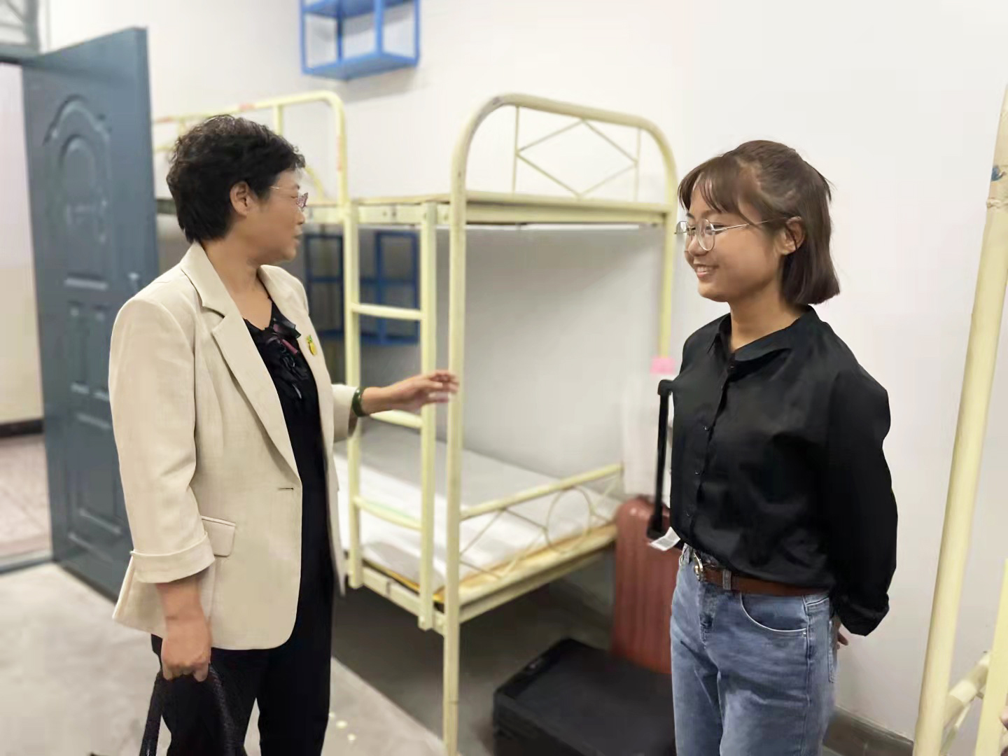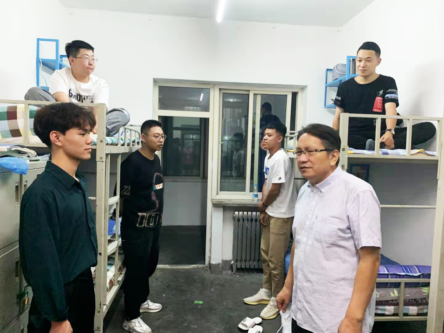 9月10日晚,tyc522cc太阳成集团领导、班主任、辅导员一行深入员工宿舍看望2021级新生。