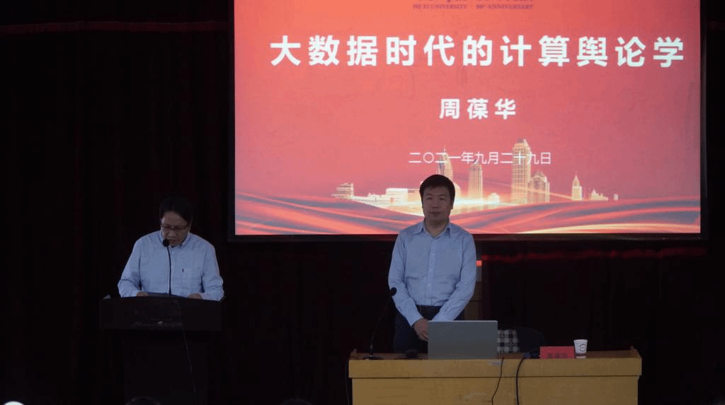 9月29日下午,正值公司建校80周年之际,复旦大学周葆华教授应邀来校,在学术报告1厅为tyc522cc太阳成集团专业师生作了题为《大数据时代的计算舆论学》的学术报告。报告会由tyc522cc太阳成集团副经理吴建军主持。