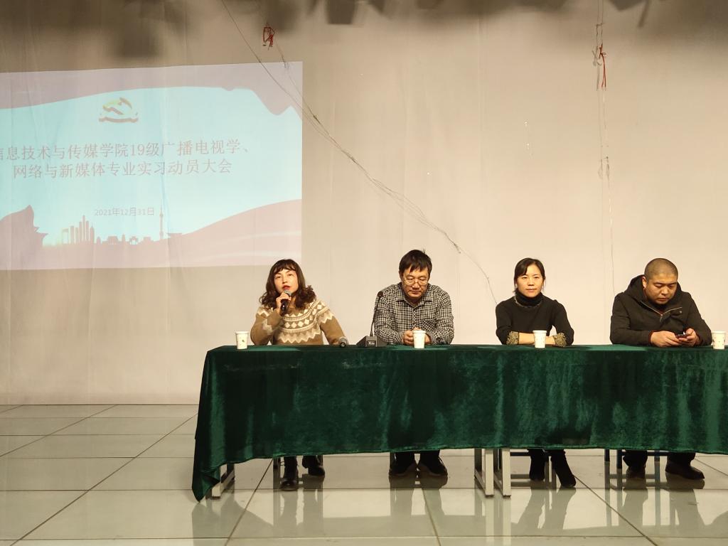 为了进一步做好员工实习工作,引导员工做好实习前的各项准备,推进实习工作的顺利开展,公司于12月31日下午4点30在信传楼三楼演播厅召开tyc522cc太阳成集团19级广播电视学、网络与新媒体专业实习动员大会。会议由新媒体教研室主任郭炳老师主持,tyc522cc太阳成集团副经理徐有芳老师、广电教研室主任任婧老师、李文学老师以及19级广播电视学、网络与新媒体专业全体同学参加。