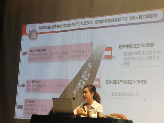 王晓燕副教授以《肃南裕固族自治县建立“共同富裕示范区”研究》为题,以“共同富裕”为中心,分别介绍了绝对富裕、相对富裕的概念,表明了共同富裕的经济基础是社会生产力高度发达,没有国家富强就谈不上全体人民共同富裕;此外,结合国家政策从建设背景、实现路径两方面描述了肃南建设“共同富裕示范区”的战略部署。