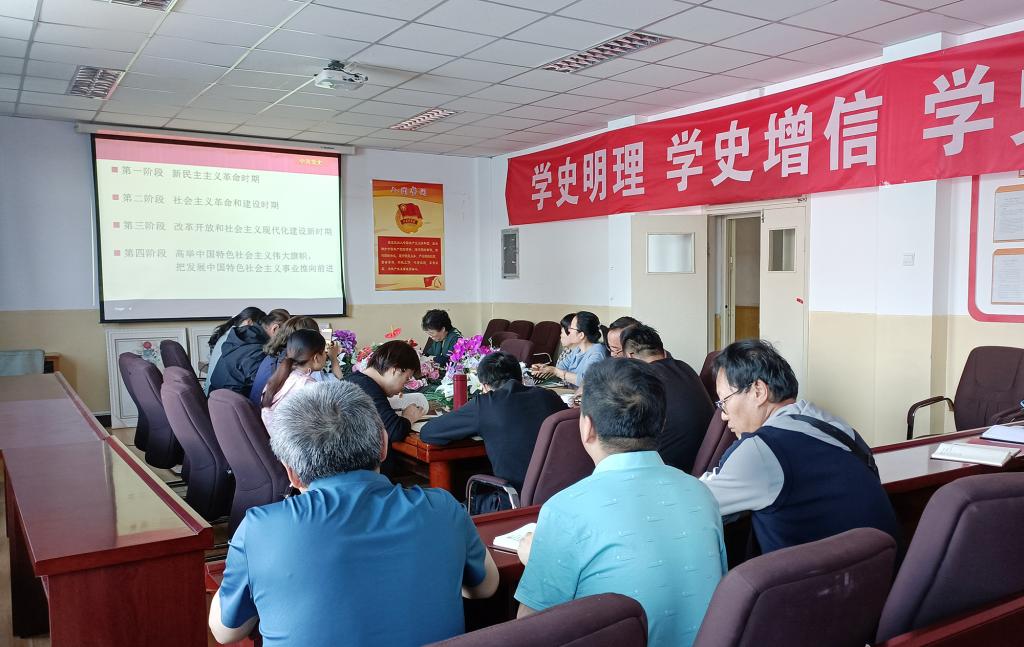 5月19日下午,tyc522cc太阳成集团教工党支部召开党史学习教育专题党课。教工党支部副书记尚珍同志作了《铭记历史 望未来》的专题党课。党支部成员参加了学习。