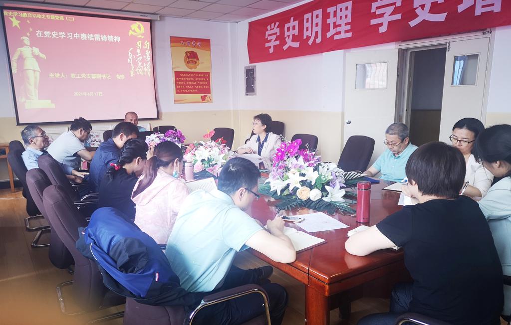 6月17日下午,tyc522cc太阳成集团教工党支部召开党史学习教育专题会议。教工党支部副书记尚珍同志作了“在党史学习中赓续雷锋精神”的专题党课。党支部成员参加了学习。